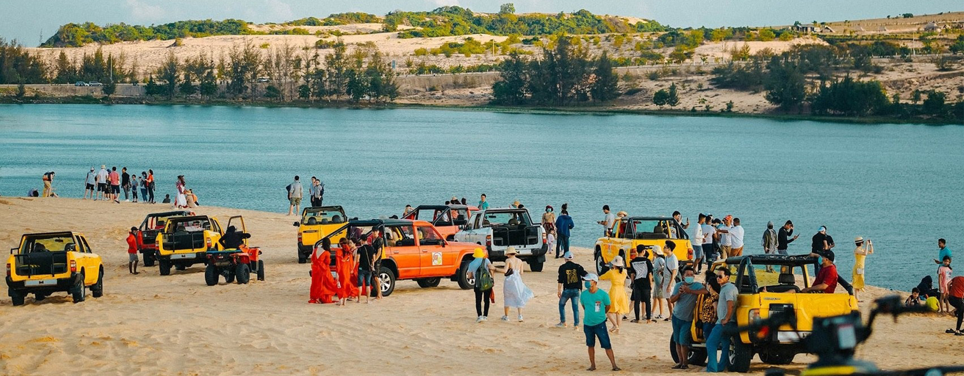 Tour xe Jeep Mũi Né mang đến hành trình độc đáo chinh phục những đồi cát vàng rực, băng qua suối Hồng thơ mộng và ghé thăm làng chài bình yên ven biển, bạn sẽ cảm nhận trọn vẹn vẻ đẹp hoang dã của Mũi Né trong ánh bình minh hoặc hoàng hôn rực rỡ – một trải nghiệm không thể bỏ lỡ cho những ai yêu thích khám phá.